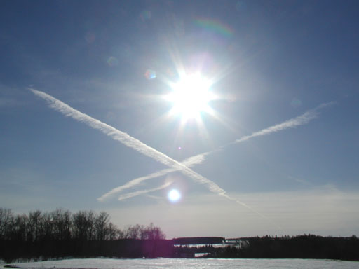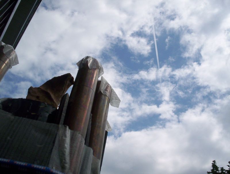 Nous voyons que le ciel est rempli de Chemtrails. Les tuyaux sont ceux de mon Chem-buster.
